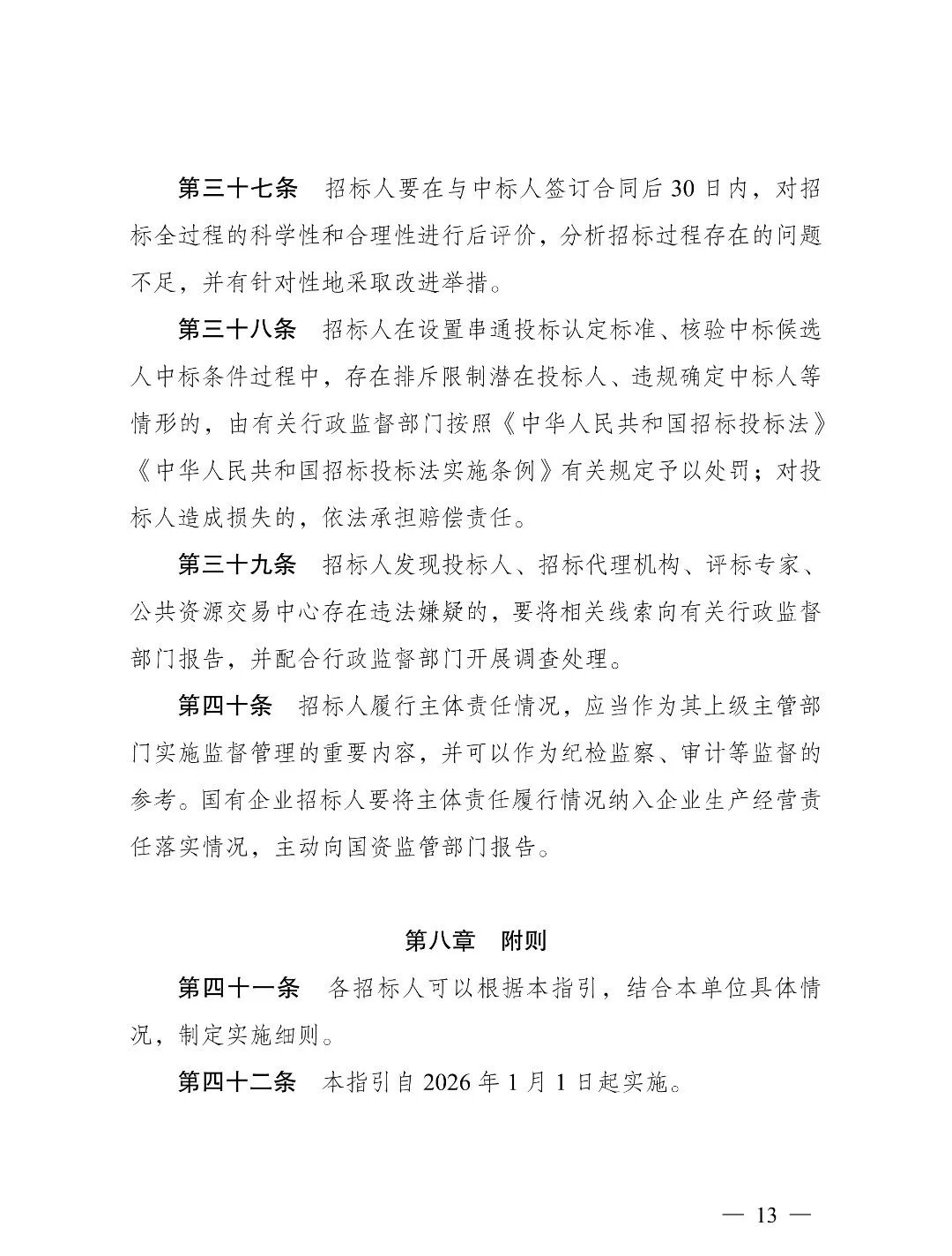 近日,为深入治理招标投标领域突出问题,国家发展改革委等部门印发《招标人主体责任履行指引》,为招标人履行主体责任提供具体明确的行为规范,引导和督促招标人履职尽责。
